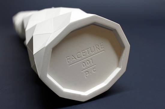 Il designer Phil Cuttance presenta Faceture, la collezione di vasi particolari e ricercati realizzati però in modo semplice. Sei step, sei passaggi per dar vita a piccole opere d’arte. Il primo passaggio è quello che vede la realizzazione dello stampo in plastica, servendosi di una matrice a pattern rettangolare. Creato il volume, si sceglie il colore, si aggiunge l’addensante e si mescola il tutto. Successivamente si fa colare la resina ad acqua nello stampo, prima posizionato su un tornio. Una volta asciutto, sarà sufficiente rimuovere lo stampo per avere tra le mani il vaso. Geometrie e colori sempre diversi, per un’idea di arredamento sempre nuova.
