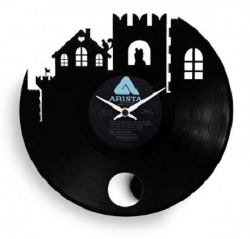 Un orologio da parete con movimento a pendolo in edizione limitata, realizzato con un disco di vinile del diametro di 30 cm circa. (49€)