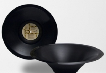 Una ciotola realizzata con un disco di vinile del diametro di 30 cm circa. (22€)