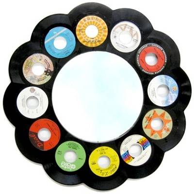 I classici singoli su vinile 7” si trasformano nella cornice di uno specchio unico, 22 cm di diametro.