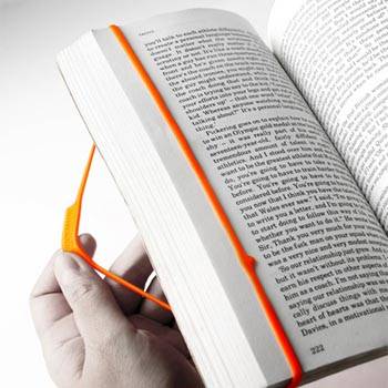 Nasce in casa Propaganda il segnalibro piccolo e originale che porta il nome di Bookmark II. A differenza dei sui famosi predecessori, Bookmark non si usa a fine lettura per tenere il segno, ma durante la lettura, aiutandoci anche a tenere il tomo aperto. Una sottile striscia di eleatico colorato, morbido, composto da due elementi principali, uno di forma rettangolare e uno di forma triangolare. La parte rettangolare, che riporta inciso il nome del prodotto, può essere tenuta tra pollice e indice e permette sia di tenere aperto il libro sia di trovare facilmente il punto esatto in cui abbiamo interrotto la lettura. L’elemento triangolare funge da simpatica freccia, arrivando anche ad indicare la riga precisa di arrivo. La freccia può anche essere spostata durante la lettura per mantenere sempre il segno ed evitare di addormentarsi rovinosamente sul libro dimenticando dove si è arrivati. Forse la scelta del materiale elastico non è la più felice per quanto riguarda lo scorrimento sulla carta, ma è senz’altro utile per spostare senza intoppi il cursore.