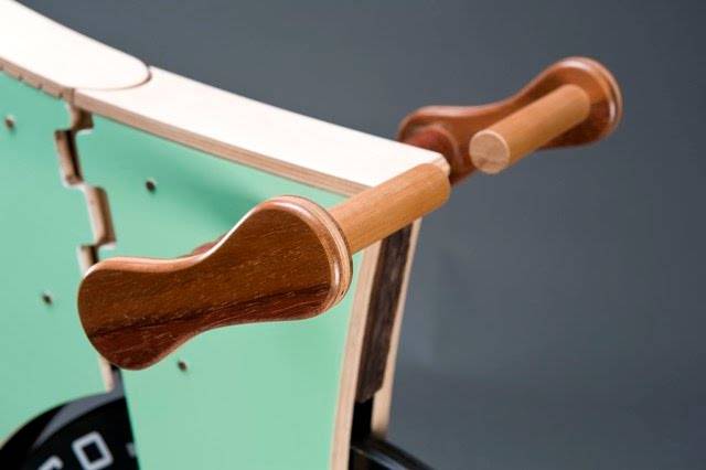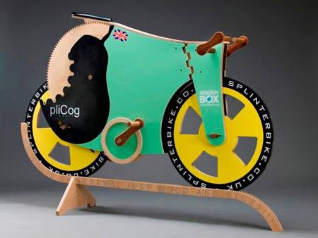 Splinterbike è il simpatico nome dato alla prima bicicletta realizzata completamente in legno, dalla struttura esterna agli ingranaggi più microscopici. Questa bicicletta è il frutto di una sfida, di una scommessa tra due amici, gli inglesi Mike Burrows e Michael Thompson. 31kg e 1000 ore di lavoro per dar vita ad una due ruote aerodinamica e sinuosa. Thompson non ha utilizzato viti, ma ha semplicemente assemblato il tutto con incastri e colla. Tra i diversi tipi di legno utilizzati vi è il Lignum Vitae, un legno in grado di auto lubrificarsi in modo da ridurre al minimo le inevitabili frizioni nelle giunzioni. Un’idea di grande impatto il cui utilizzo quotidiano è però poco attuabile.