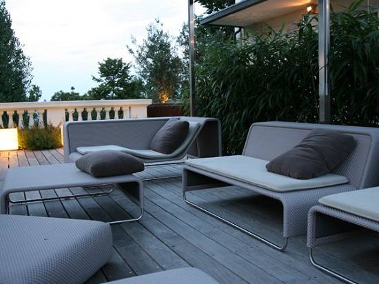 I colli di Bologna offrono un paesaggio naturale ricco di storia, sede di una bellissima villa storica del Settecento il cui restyling è stato affidato a Frassinagodiciotto, società specializzata nella progettazione di esterni. La villa è stata frazionata in diverse proprietà, così come i terrenti esterni. Il progetto della società, quindi, si è concentrato su due di questi spazi, uno da rendere giardino pensile, l’altro da trasformare in terrazzo. Il giardino pensile nasce da una superficie asfaltata preesistente e verrà trasformato in uno spazio verde, dove legno, pietra e prato conviveranno armoniosamente. Il terrazzo presenta linee decisamente più rigoroso, dove l’elemento verde sarà distribuito mediante appositi contenitori posti sotto la pavimentazione in legno. Questa zona assumerà quindi un ruolo di rappresentanza, dove elementi di arredo di alternano a linee pulite ed essenziali, tra olivi e legno di bambù.